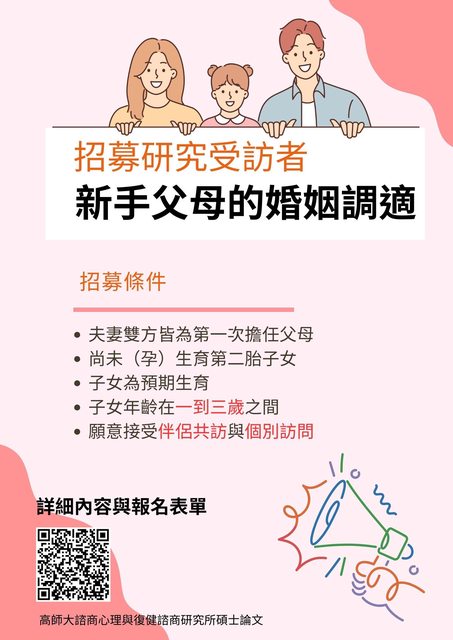 目前正在進行《新手父母的婚姻調適:夫妻對偶研究》,