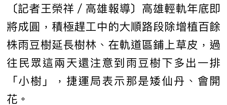 → globeMIX : 上面說月台種樹的不是指大順路段吧 02/14 11:00