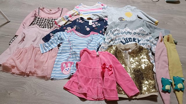 大約1歲半即可穿的洋裝、外套、圍巾(若小孩長高,裙子太短亦可當上衣)