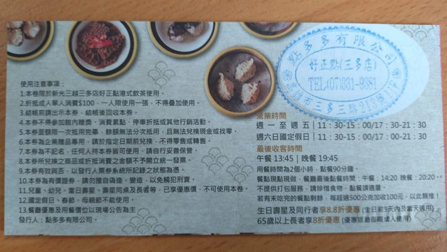 物品名稱:好正點三多店$100折價券,共四張