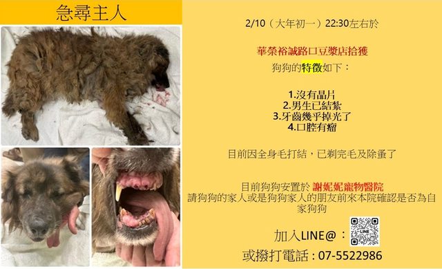 推 mana1993 : 希望不是棄養,但很難。老狗+健康不良+沒有晶片。幾 02/29 22:10