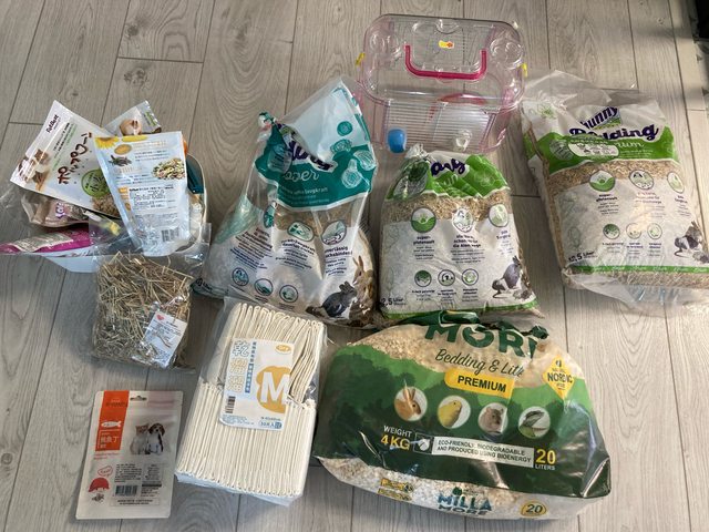 有小籠子、飼料、零食、稻草、保潔墊等耗材