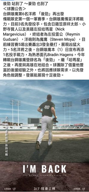 推 yitetsai : 這雖然我在地高雄人支持台鋼雄鷹,但這樣幫洋將亂 03/02 21:40