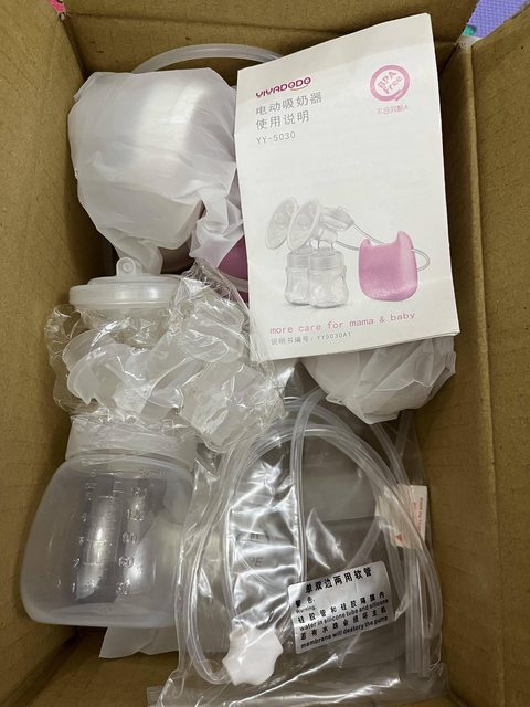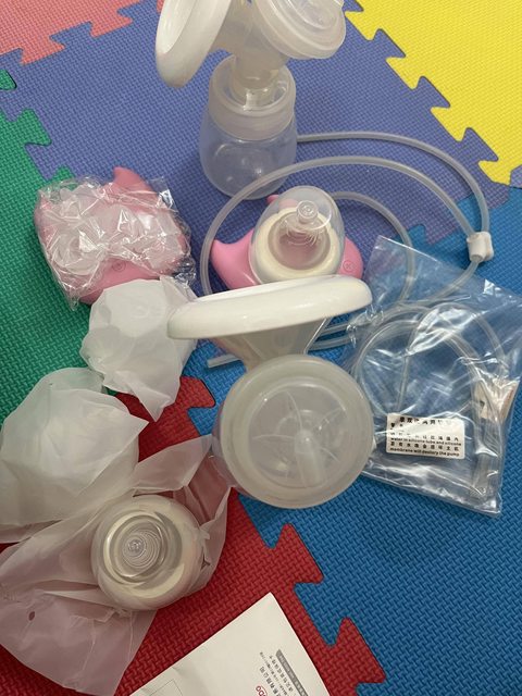 擠乳器。有兩組。含新的鴨嘴頭、儲乳瓶奶嘴頭等備品
