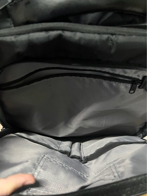 側面有兩個可放水壺的位子,共有三個夾層,每個夾層內都有小袋可裝東西,可放行李箱