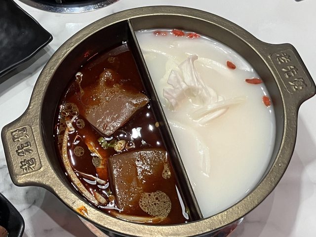 麻辣鍋鍋底基本是兩塊鴨血,龍骨鍋則是多個枸杞