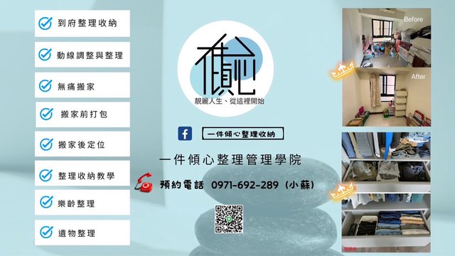 嗨!我是一件傾心收納整理團隊的小蘇是受過台南市政府完整專業培訓並通過整理師認證