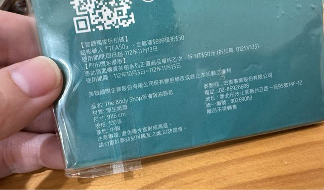 物品名稱:美體小舖吸油面紙全新兩包