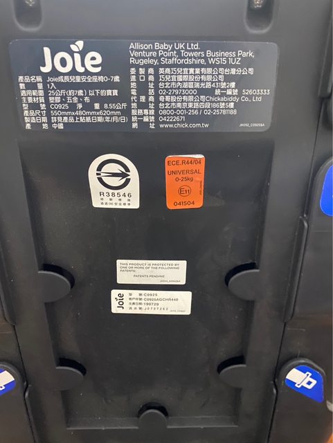 物品名稱:joie stages0-7歲汽座