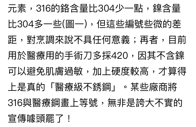 → hancash : 316L是醫療鋼沒錯,健保用的骨板、骨釘都是這種, 04/12 18:42
