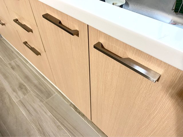 以全部換成圓弧把手,因為是在廚房使用難免有水漬油漬(已清潔過一次)或是刮到的痕
