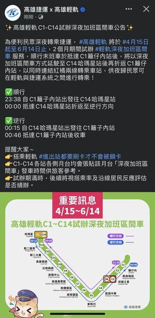 → ui : 住宅區不需要這麼晚班,輕軌能接駁到捷運站就好了 04/12 21:36
