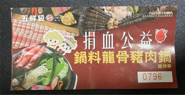 同事捐血送的火鍋招待券