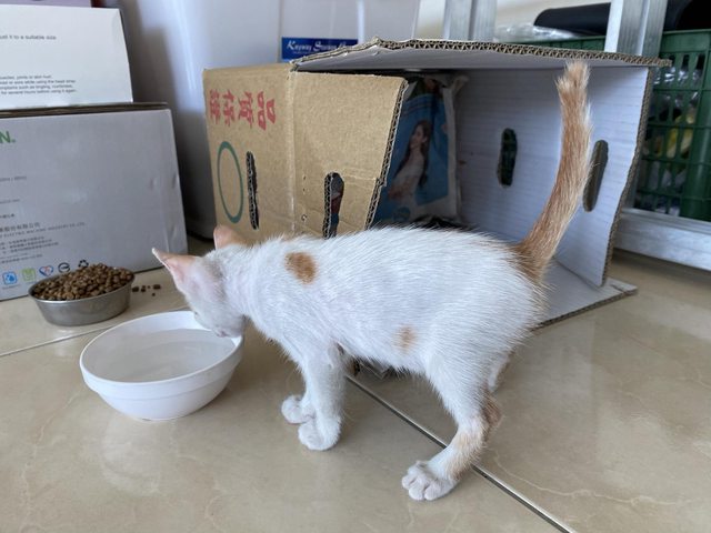 醒來後食欲啵棒 直接嗑了我兩條肉泥,吃完沒得續條繼續睡 早上看時間差不多了趁工作中途先送去獸醫做基本的檢查+洗澡+除蟲 是個自來熟的小女生 就連醫助都說牠有夠乖這隻可以養! 小貓很健康沒有貓愛滋與貓白血 除了無法馬上清除乾淨的油汙外無明顯外傷四肢健全 帶牠進家門各種探險尾巴翹的老高了 https://i.imgur.com/dWyMZIv.jpeg