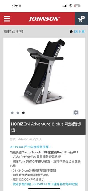 物品狀況:功能正常 Johnson HORIZON Adventure 2 plus 喬山電動跑步機含地墊 原價
