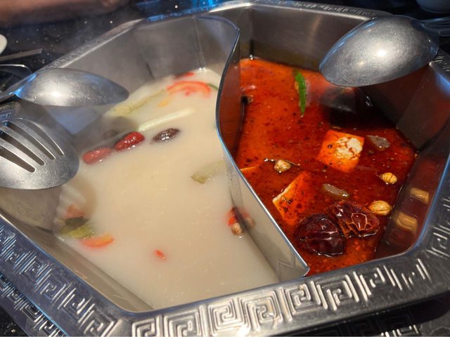 白鍋部分是使用豬骨跟雞湯下去熬煮,
