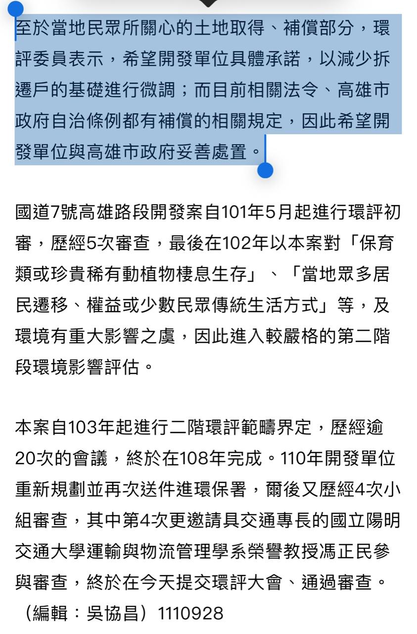 推 misson : 環評的決議就是要優化路線減少拆遷,現在就是優化 05/09 16:18