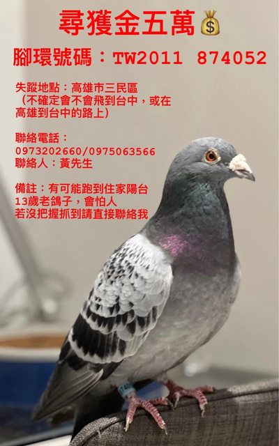 推 book729 : 會幫忙注意,希望鴿鴿早日回家05/19 15:11