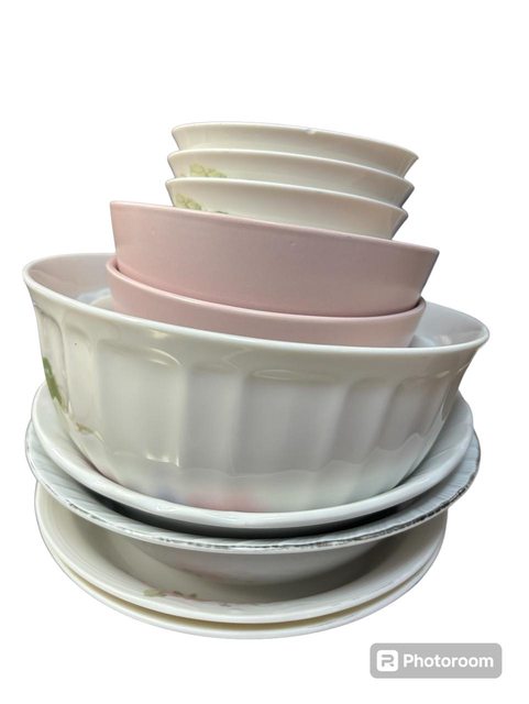 物品名稱:多樣的二手鍋碗瓢盆:有鍋子、大小不同的碗和盤子,如圖