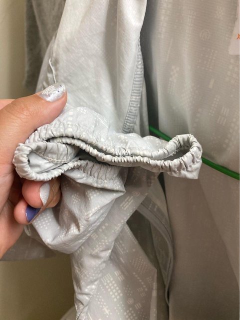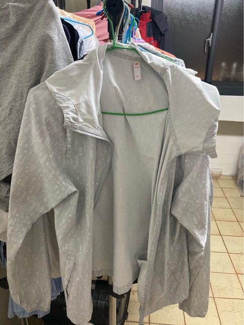 UV100的外套,無彈性有點髒污(很小),實體是淡藍色的!!!尺寸建議L以下(XL可以