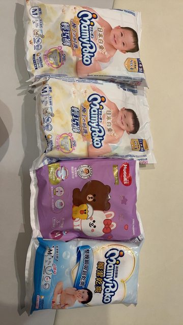 右邊兩包未過期,左邊兩包白金過期了(過期尿布的防水層可以玩,還有媽咪分享可以將未