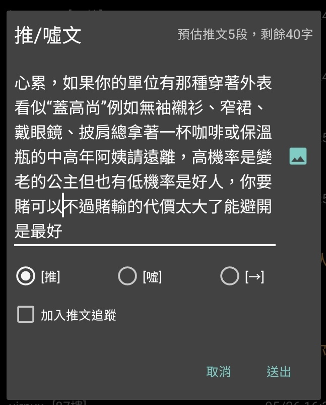 → virnux : 主管會怕你 不敢叫你做事又治不了你 因為你有在做只 05/26 16:35