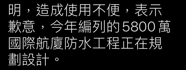便,表示歉意,今年編列的5800萬國際航廈防水工程正在規劃設計。