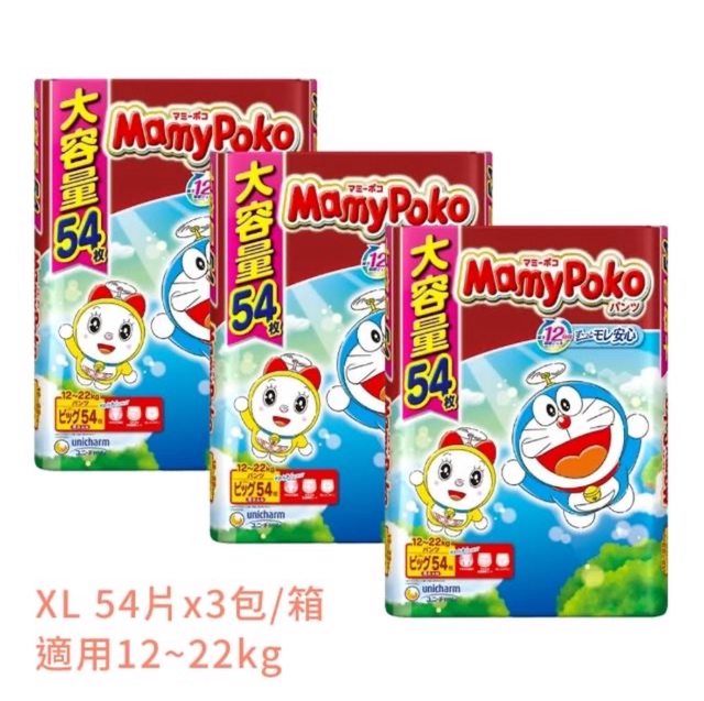 欲換物品:滿意寶寶 哆啦A夢輕巧褲 增量版 3包/箱 XL 褲型、尿布、日本境內版