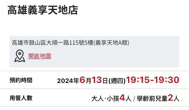贈送地點:(限填高雄地區)來信提供訂位代號