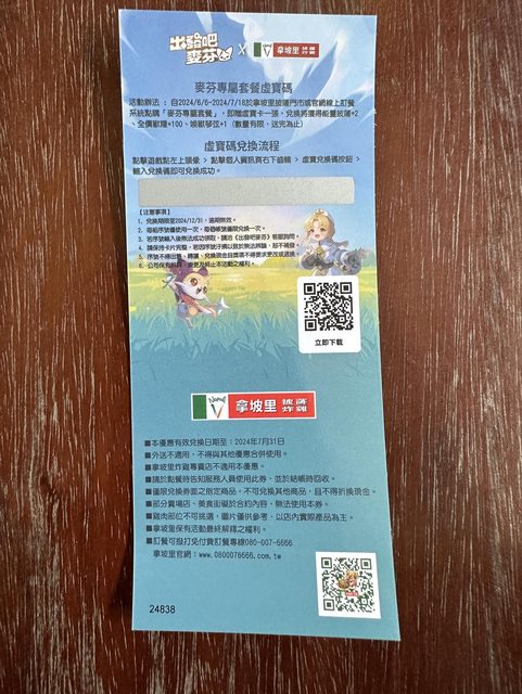 標題[贈送] 拿坡里-麥芬專屬套餐虛寶碼