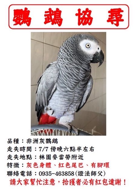 標題[問題] 灰鸚鵡飛失協尋(高雄林園)
