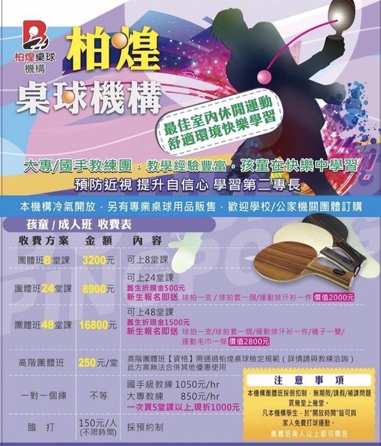 標題「轉讓」柏煌明誠館兒童桌球22堂