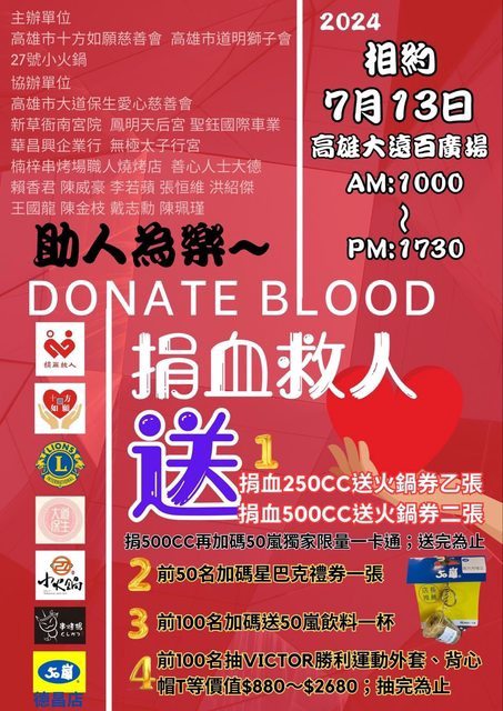 推 fatfatjohn : 高雄看到給的東西都不怎樣,昨天收到台南捐血站的信 07/13 16:27