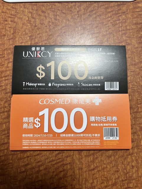 2.康是美抵用券*30(指定商品滿1000折100,單筆限折乙次)
