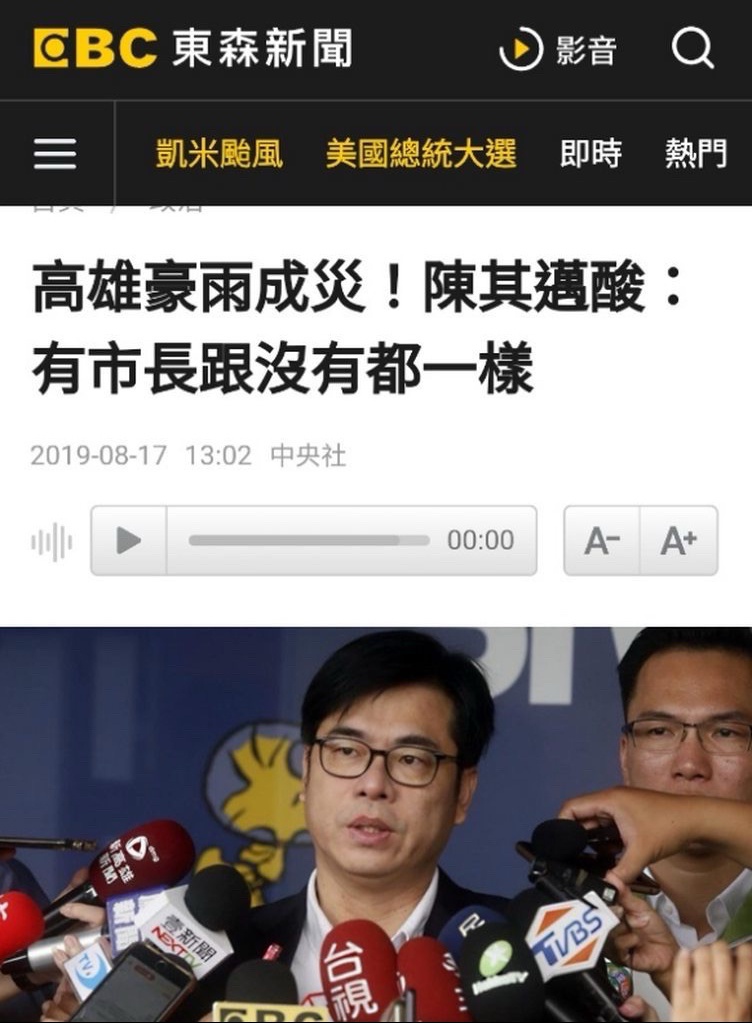 → copybrown : 再吹高雄喔 它媽笑死 淹水就淹水阿 扯東扯西扯三小 07/26 22:52
