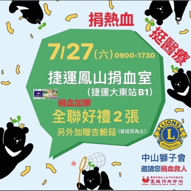 標題[閒聊] 7/27、7/29禮品豐富捐血場次(全聯200