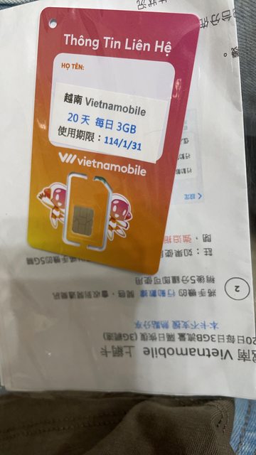 物品名稱:越南Vietnamobile20天每日3GB網卡,期限至114/1/31