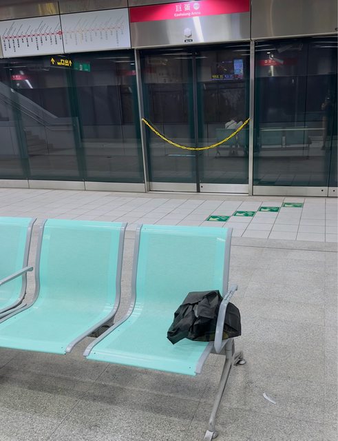地點:高雄捷運,巨蛋站,月台椅子上。