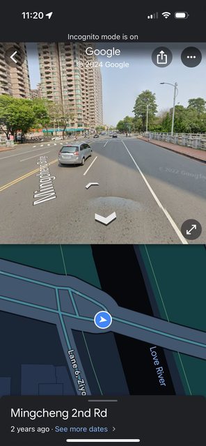 明誠二跟愛河交叉橋(河堤路前、自由二路6巷間),內車道直接對上河堤路左轉附加車道