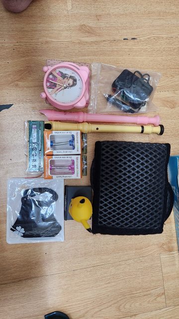 物品名稱:造型鬧鐘2個、直笛2個、吸盤式手機架2個、車用垃圾桶、車用12V延長插座、