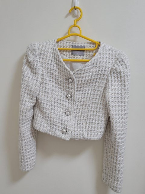 5.白色短版毛呢格紋外套(冬季厚)(換出)