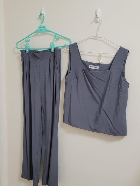 3.灰色秋季套裝 褲子後鬆緊
