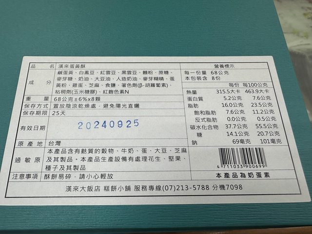 物品名稱:漢來旺月禮盒 效期2024.9.25