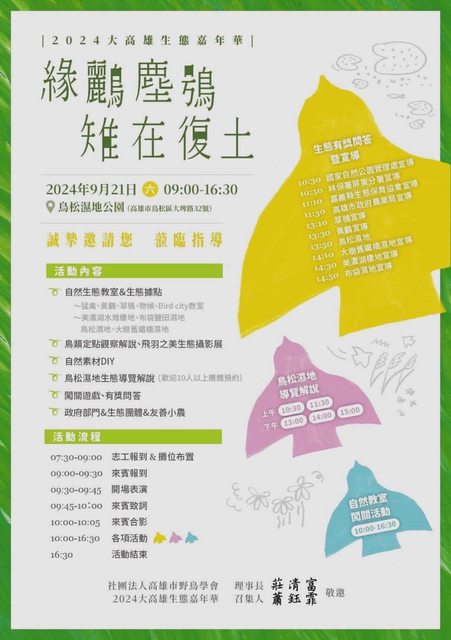 2024/09/21(六) 09:00-16:30 鳥松濕地公園