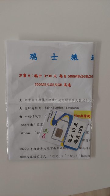 ※全新瑞士10天10G網卡。