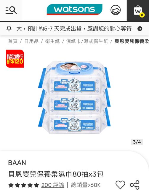 欲換物品:貝恩濕紙巾(80抽*3包)