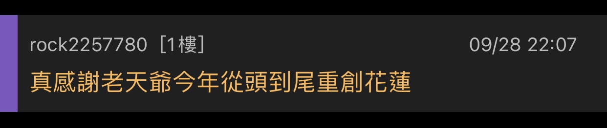 推 bettybuy : 樓上,那句話很明顯是花蓮人在嘲諷老天爺吧== 10/03 15:18