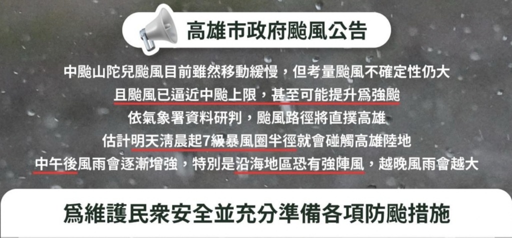 → kku6869 : 驗,正常的速度高雄登陸,高雄重創,上班上學的會 10/04 13:33