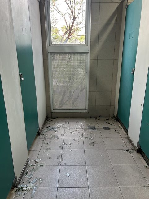到學校後,到處都是樹葉樹枝甚至碎玻璃