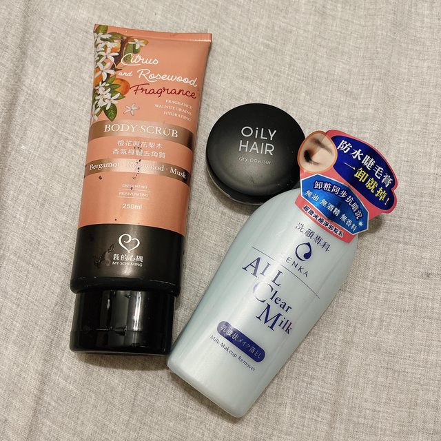 去角質乳霜與瀏海蜜粉為二手物品